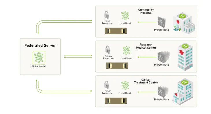 또한 FL은 비단 Edge client 뿐 아니라 언급한 데이터 보호 측면에서 의료 분야에서도 주목받는다.