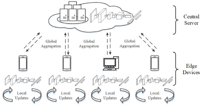 연합 학습의 기본 개념은 중앙 집중식 모델을 분산 장치로 가져와 사용자 데이터 수집의 필요성을 없애는 것입니다. 모바일 인터넷 기술의 발달로 모바일 기기는 점점 더 가볍고, 휴대가 간편하며, 컴퓨팅 파워 또한 지속적으로 상승하고 있습니다. 연합 학습에서 훈련 과정은 중앙 서버에 의해 조정되는 로컬 장치(클라이언트)에 의해 수행됩니다. 각 클라이언트에는 로컬데이터가 있습니다. 각 데이터는 개인의 민감한 정보를 담고 있으므로 serverside로 업로드 되는것을 피해야 합니다. 이에 FL은 기존 알고리즘과 같은 훈련절차를 위해 서버에 데이터를 업로드하는 대신 모델을 복사본을 통해 여러 에포크 동안 모델을 훈련하고 훈련된 매개변수를 집계를 위해 중앙 서버로 전송합니다.