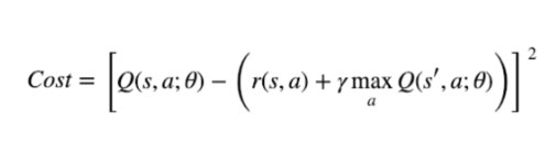 좌우의 차이를 최소화 한다고 했으니 그 차이의 제곱을 비용함수로 하는 신경망을 훈련하는 과정으로 Q table을 근사 할 수 있습니다.