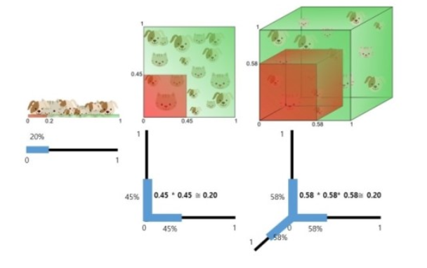 하지만 이 접근법과 직관은 고차원에서는 쉽게 사상되지 않으며 이러한 현상을 차원의 저주라고 부른다.